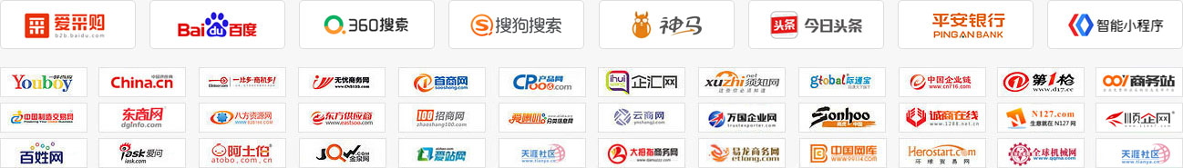 一比多 八方資源網(wǎng) K2商務(wù)網(wǎng) 首商網(wǎng) 無(wú)憂商務(wù)網(wǎng) 金屬期貨 蜘蛛客 第一槍 淘金地 萬(wàn)國(guó)企業(yè)網(wǎng) 誠(chéng)商在線 搜好貨網(wǎng) 供求信息網(wǎng) 如意寶建站 如意問(wèn)答 最新商機(jī) 中國(guó)供應(yīng)商 卓采匯 搜貨寶 100推 企業(yè)聯(lián)合網(wǎng) 領(lǐng)商網(wǎng)